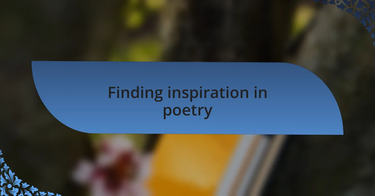 Finding inspiration in poetry often comes from the raw emotions embedded in personal narratives. I remember a particularly moving moment when I stumbled upon a poem written by a refugee who eloquently described the feeling of being torn between two worlds. The way she articulated her longing for home struck a chord within me; it was a reminder that every word can serve as a bridge connecting hearts across vast distances. Isn’t it incredible how poetry can encapsulate such complex emotions in just a few lines?