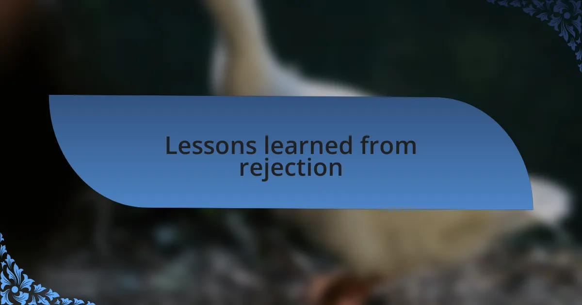 One striking lesson I’ve learned is that rejection often serves as an unexpected catalyst for self-improvement. After a series of rejections from well-known journals, I decided to focus on honing my craft further. I enrolled in workshops and sought feedback from fellow poets. Each rejection became a natural part of my evolution, pushing me to explore new themes and styles that I had previously been hesitant to tackle. Isn’t it fascinating how adversity can steer us toward creative paths we never considered?