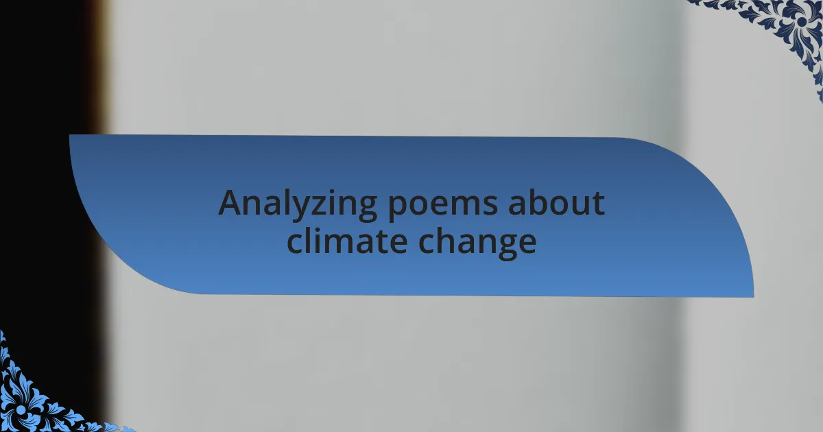 In my experience, analyzing these poems helps uncover layers of meaning that reflect both anguish and hope. I once joined a discussion group where we dissected a poem portraying melting glaciers. The imagery was stark and haunting, yet it sparked conversations about resilience and the need for collective action. It was enlightening to see how each participant drew unique interpretations, highlighting the multifaceted relationship between human emotion and environmental themes.
